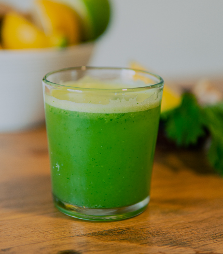 Jugo de apio, manzana, limón y jengibre